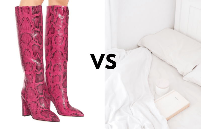 Large purchases, in this case, should be essentials, like a bed, a dishwasher, or a computer; things that you’ll use as part of daily life and can feel the value in when payment time rolls around. You’ll feel much better making payments on something that’s actually making your life better versus on something like pink faux-snakeskin boots you haven’t even worn once.