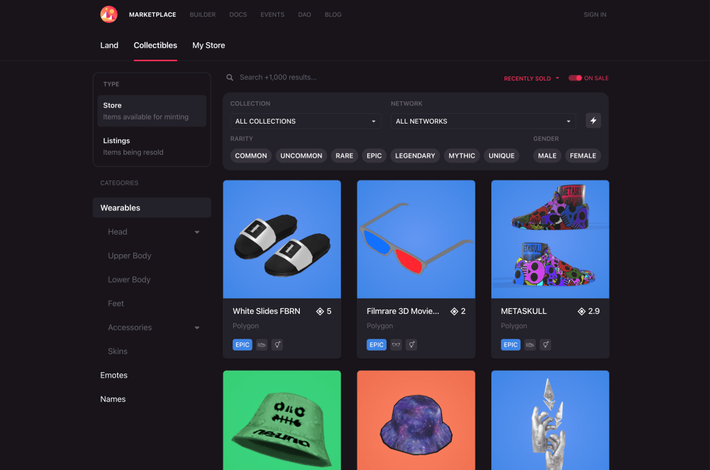 Decentraland’s marketplace where you can buy and sell NFT wearables and LAND.