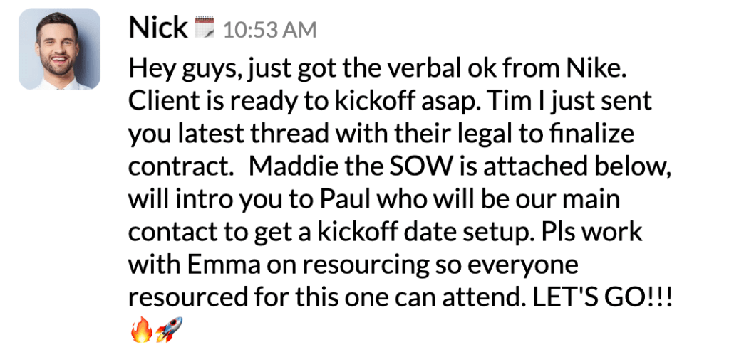In many agencies, the handoff doesn’t get much attention because it’s not a client facing milestone or deliverable. And since the project clock hasn’t officially started yet, no one is officially allocated the time to spend on it. The point here is that if you don’t invest the time up front to align the teams, you’re setting them up to fail before the work even starts.