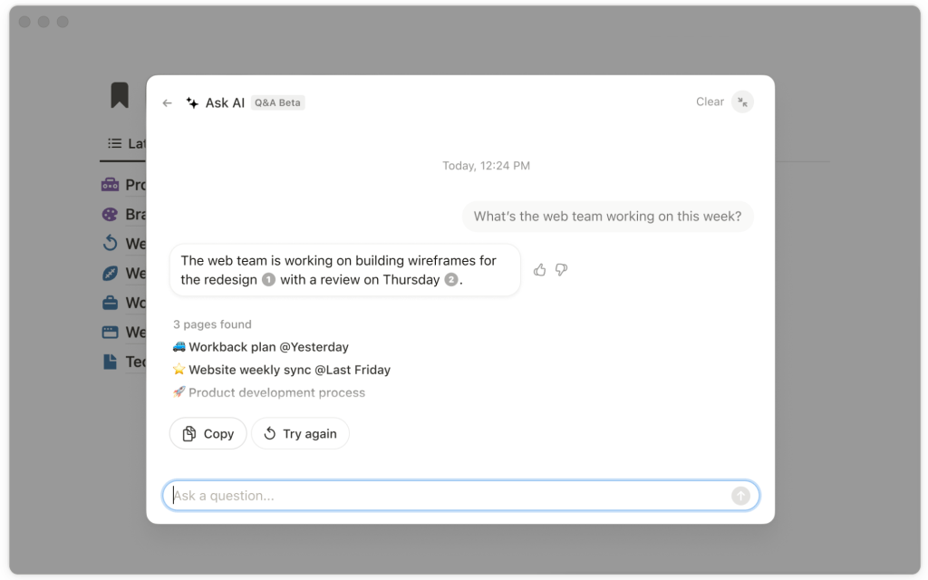Notion Q&A: Provides instant answers based on workspace content, streamlining workflow.